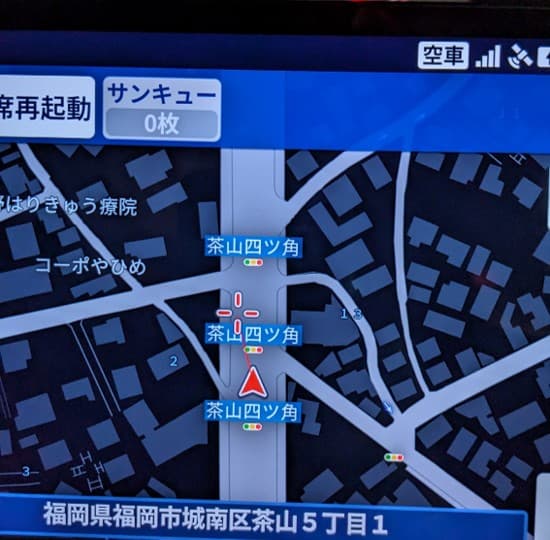 福岡市城南区にある茶山四つ角は3つある。だからGOタブレットにはこんな風に表示される。最初見た時は何かのバグかと思ったが、どうやらこれでいいらしい。