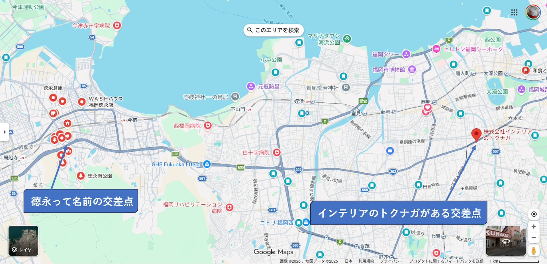 「トクナガのある交差点、わかります?」